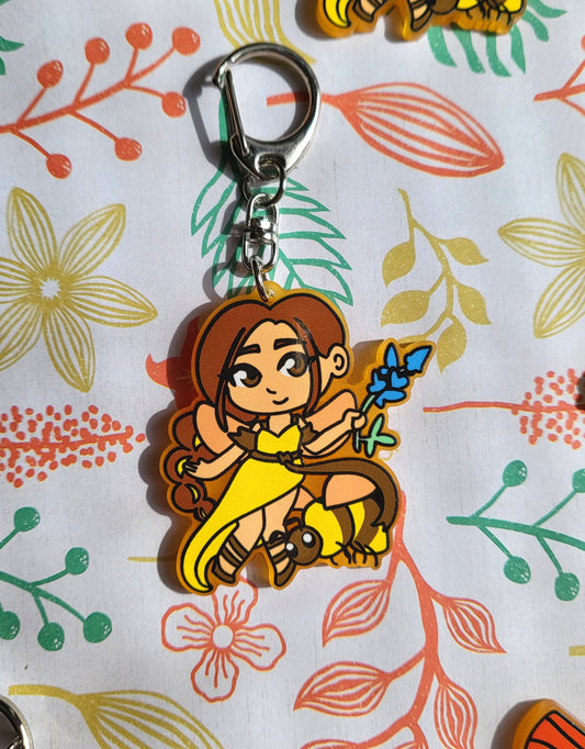 Texas Fairy Keychain Charm 2 inch Bee Bluebonnet and Monarch Coneflower