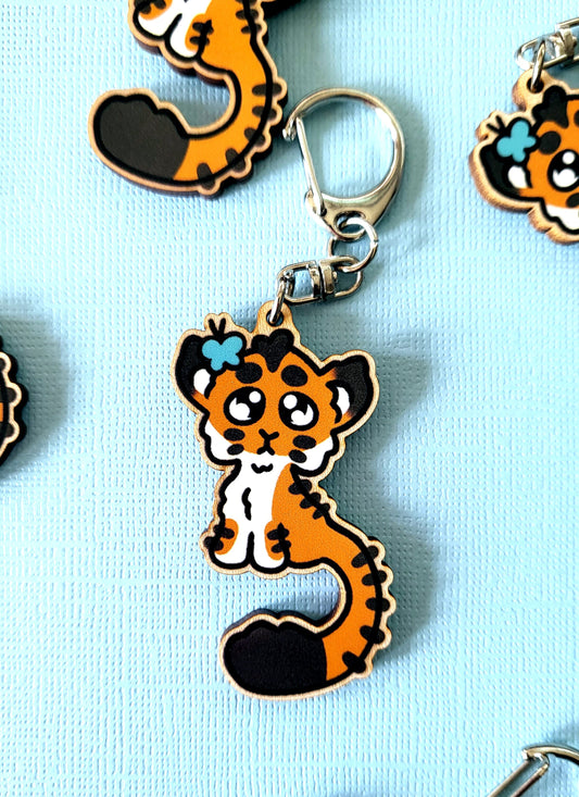 Cute Baby Tiger Backpack Wood Wooden Charm Keychain Butterfly 2inch
