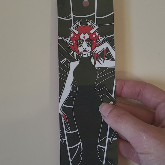 Measuring 2 inch x7 inch, this black, white, and red bookmark will make sure your place in the pages will never get lost.